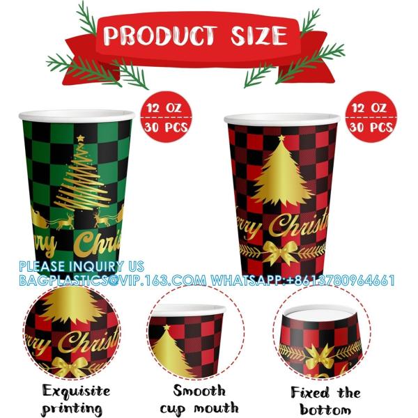 Christmas Paper Coffee Cups With Sleeves Lids 12 Oz Xmas Disposable Party Cup Christmas Tree Hot Cocoa Cups Images |